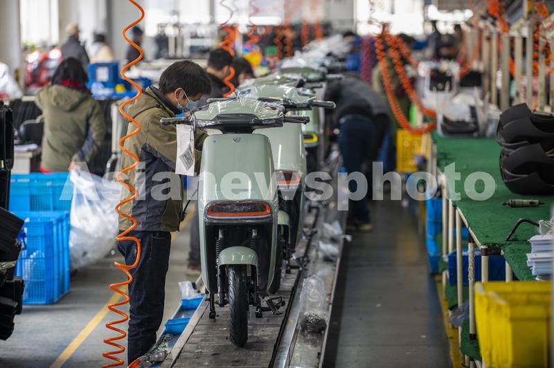 图片说明:2022年2月21日,浙江省金华市浙江绿源电动车有限公司生产线上,一台台崭新的电动车正组装下线。