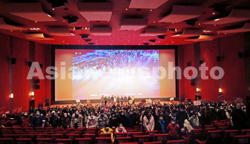 2022年2月20日,上海,中国首家五星级电影院上海影城重建前,著名的第一放映厅(千人CINITY影厅)举办谢幕仪式吸引影迷打卡留影。