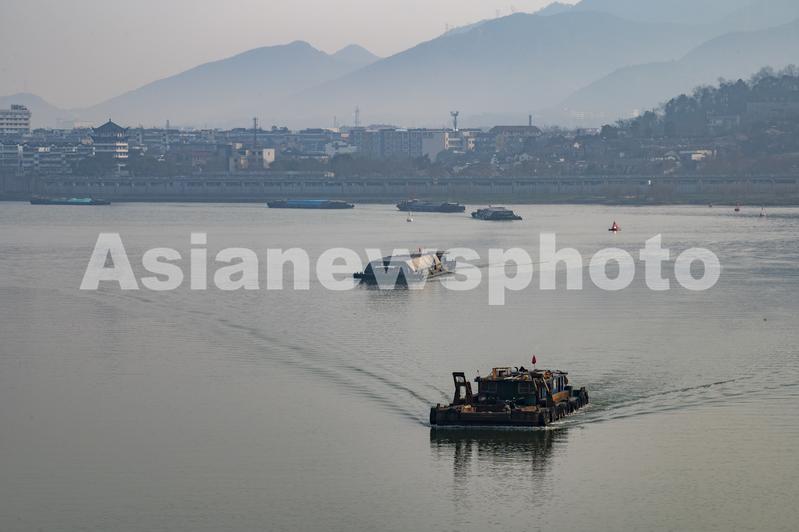 2022年2月27日,浙江省钱塘江中上游衢江航道上,货船排起长队,驶向衢江上游。