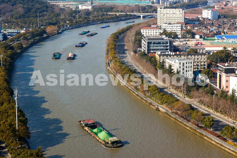 图片说明:2022年2月25日,江苏无锡,运输船舶在京杭大运河无锡段航行。