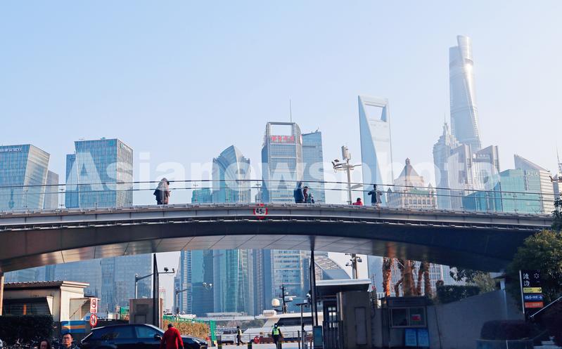 2022年2月27日,上海,北外滩滨江旅游景点人气随气温回升,市民游客漫游在黄浦江畔天桥。