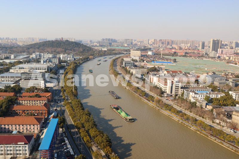 图片说明:2022年2月25日,江苏无锡,运输船舶在京杭大运河无锡段航行。
