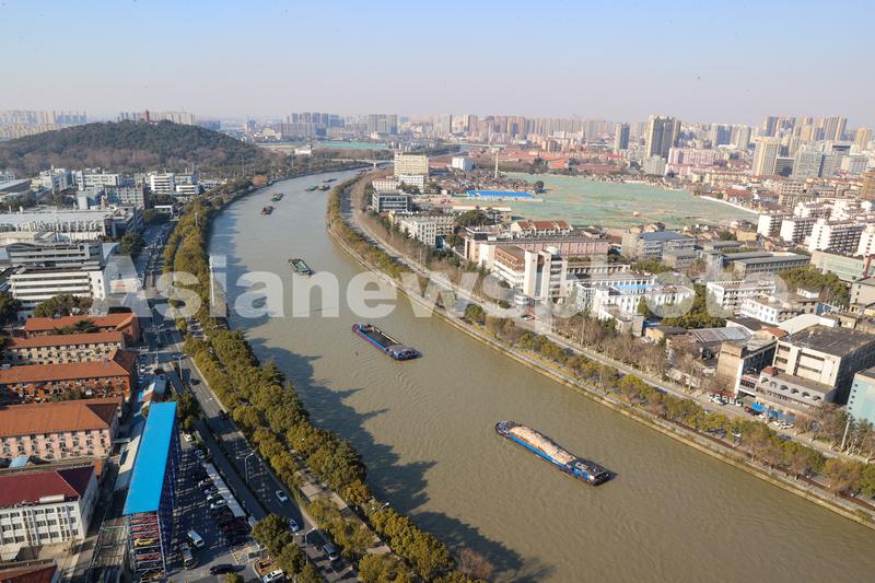 图片说明:2022年2月25日,江苏无锡,运输船舶在京杭大运河无锡段航行。