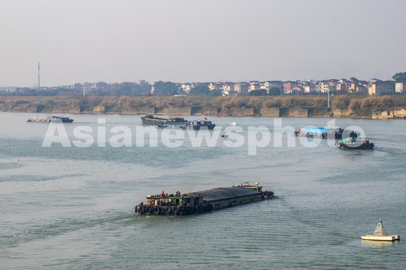 2022年2月27日,浙江省钱塘江中上游衢江航道上,货船排起长队,驶向衢江上游。