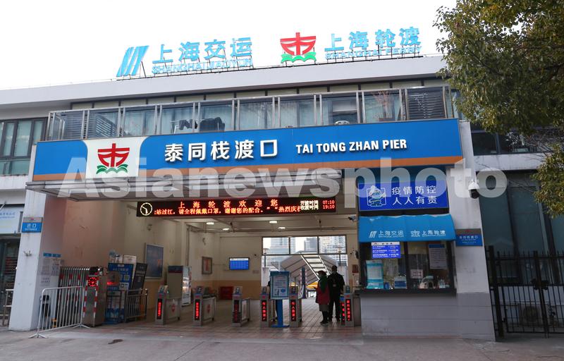 图片说明:2022年2月27日,上海,众多乘客坐黄浦江轮渡从浦西北外滩的公平路渡口摆渡到浦东陆家嘴的泰同栈渡口。