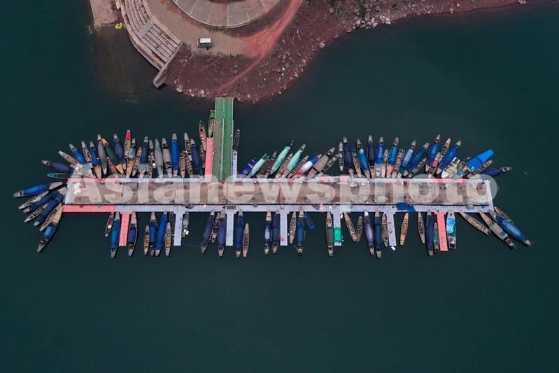 图片说明:2022年3月1日,浙江省杭州市淳安县界首乡严家渔船码头,近百余艘渔船集中停泊。