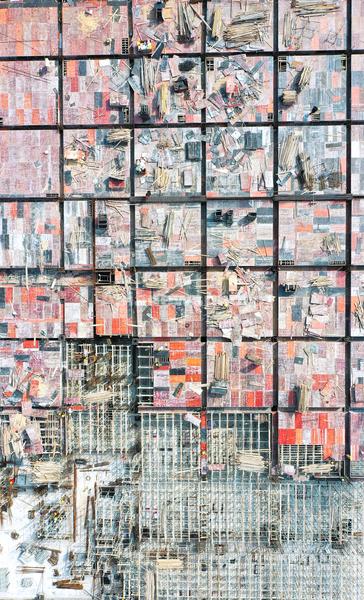 2022年3月2日,江西省赣州市蓉江新区,赣州市全民健身中心项目工地,工人在进行体育场主体结构收尾施工。