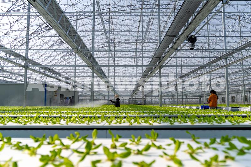 2022年3月3日,安徽省合肥市肥东县桥头集镇安徽现代雾耕农业科技示范园植物工厂温室内,农业大学毕业的的“新农人”技术员们在管护气雾栽培蔬菜。该农业示范园项目总规划面积2280亩,是集雾耕技术研发、蔬果生产、采摘、观光和农产品仓储、销售、配送一体化的现代农业科技综合体,首批聘请的5名安徽农业大学、华中农业大学等学校2021年毕业的农业相关专业大学生“新农人”春年前全部到岗,成功完成首批气雾栽培蔬菜定植。后续“新农人”们将计划培训带动该农业示范园更多普工参与气雾蔬果全面种植。