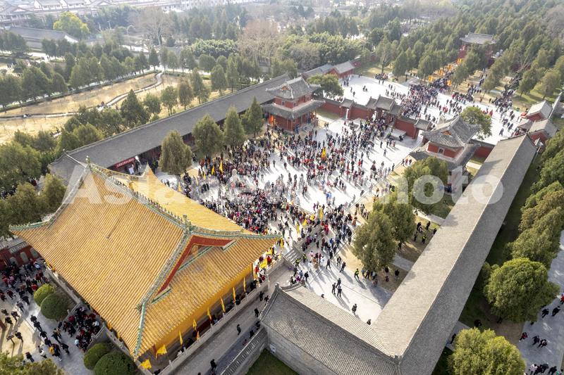 2022年3月4日,河南省周口市淮阳区,为期一个月的太昊陵庙会盛大开幕,吸引了方圆百里的游客。