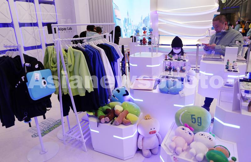 图片说明:2022年2月27日,上海,浦东新晋高科技地标支付宝空间站打造智慧城市一站式生活服务体验馆。众多蚂蚁集团文创产品、毛绒玩具吸引小朋友。