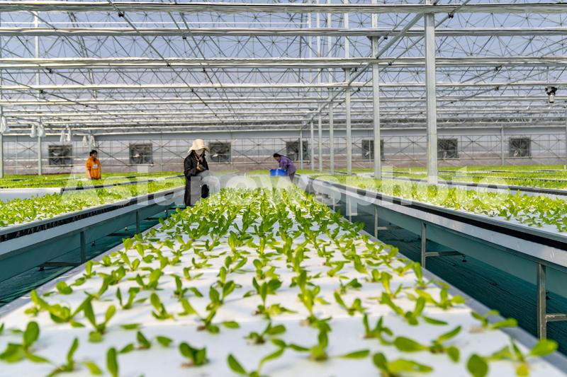 2022年3月3日,安徽省合肥市肥东县桥头集镇安徽现代雾耕农业科技示范园植物工厂温室内,农业大学毕业的的“新农人”技术员们在管护气雾栽培蔬菜。该农业示范园项目总规划面积2280亩,是集雾耕技术研发、蔬果生产、采摘、观光和农产品仓储、销售、配送一体化的现代农业科技综合体,首批聘请的5名安徽农业大学、华中农业大学等学校2021年毕业的农业相关专业大学生“新农人”春年前全部到岗,成功完成首批气雾栽培蔬菜定植。后续“新农人”们将计划培训带动该农业示范园更多普工参与气雾蔬果全面种植。