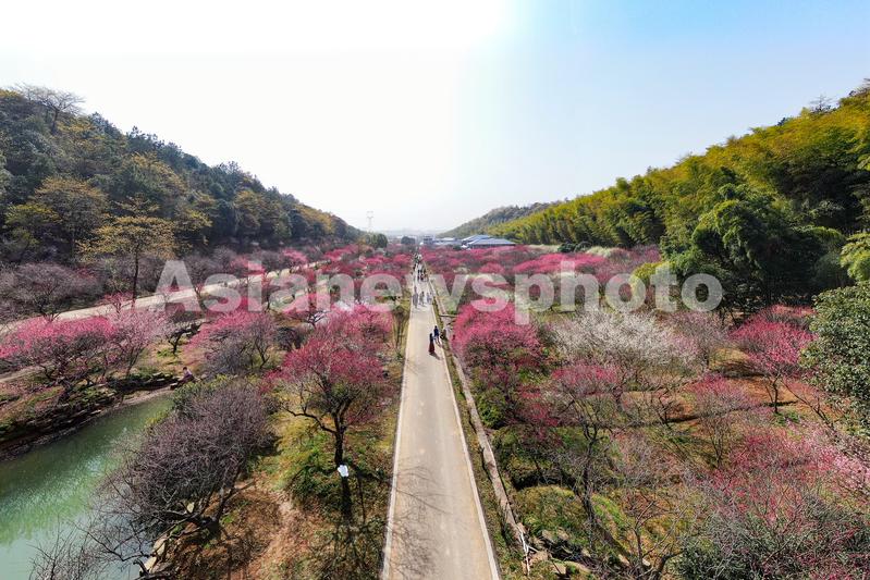 图片说明:2022年3月5日,浙江省湖州市长兴县龙山街道川步村梅花坞,东方梅园梅花竞相盛开,吸引游人踏春赏花。