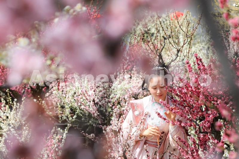 图片说明:2022年3月5日,浙江省湖州市长兴县龙山街道川步村梅花坞,东方梅园梅花竞相盛开,吸引游人踏春赏花。