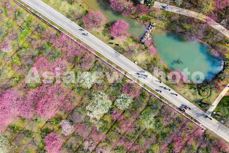 图片说明:2022年3月5日,浙江省湖州市长兴县龙山街道川步村梅花坞,东方梅园梅花竞相盛开,吸引游人踏春赏花。