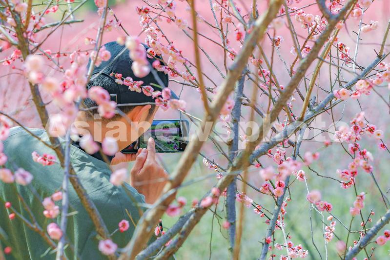 图片说明:2022年3月5日,浙江省湖州市长兴县龙山街道川步村梅花坞,东方梅园梅花竞相盛开,吸引游人踏春赏花。