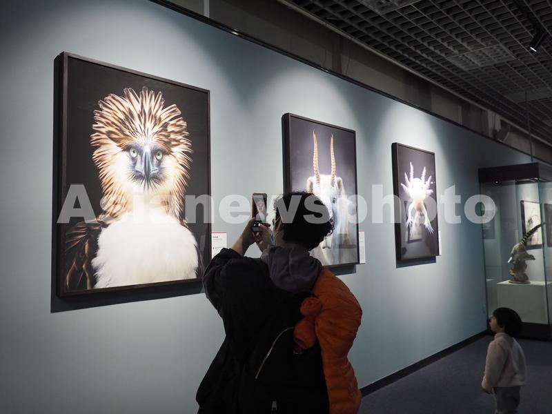 2022年3月9日,观众在北京自然博物馆参观“消失中的世界——濒危动物摄影展”。