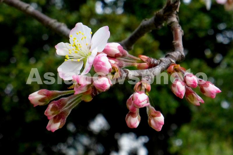 3月10日拍摄的苏州人民桥堍一株早樱花含苞欲放春意景致。