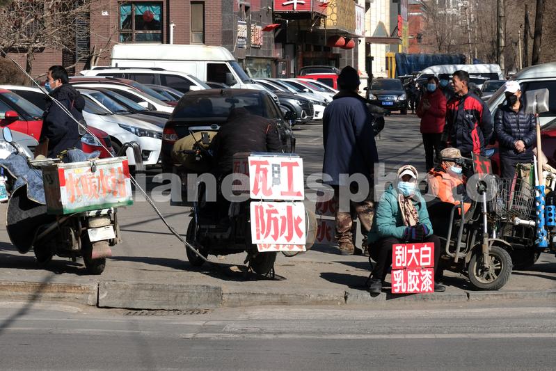 图片说明:2022年3月11日,辽宁沈阳,街头等活的零工。