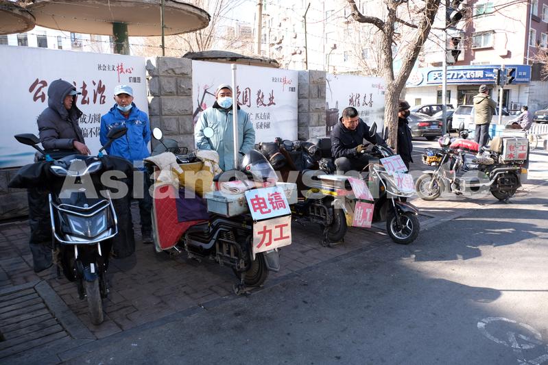 图片说明:2022年3月11日,辽宁沈阳,街头等活的零工。