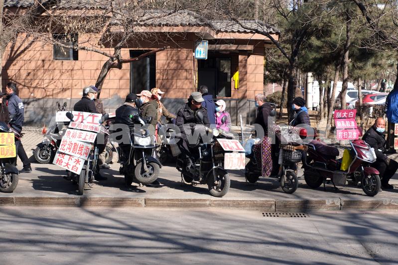 图片说明:2022年3月11日,辽宁沈阳,街头等活的零工。