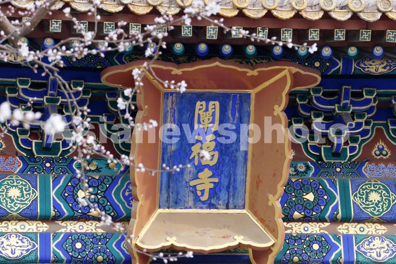 图片说明:2022年3月13日,北京北海公园阐福寺门前,山桃花绽放。