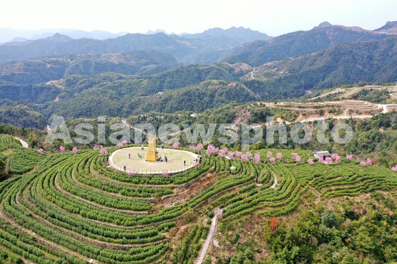 图片说明:2022年3月13日,游客在浙江省乐清市岭底乡九龙山茶场赏花拍照。