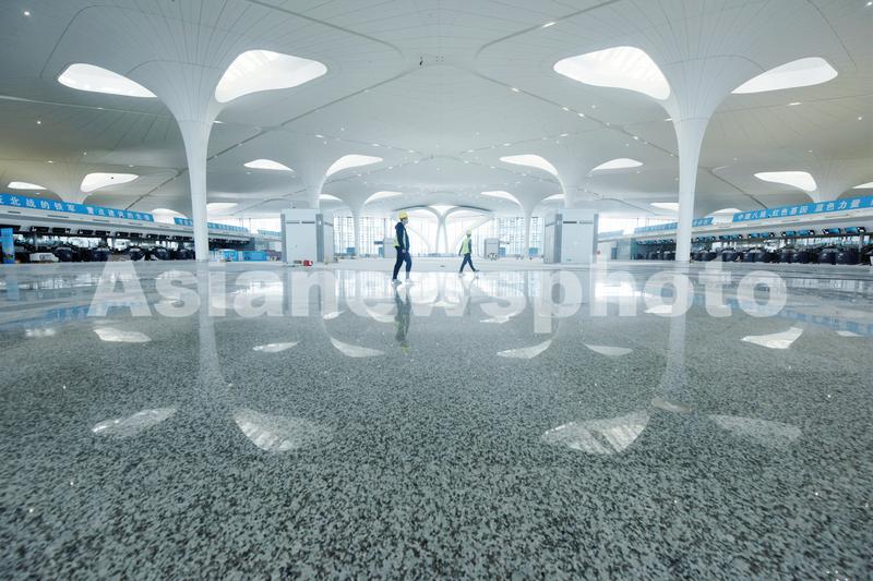 图片说明:2022年3月15日,杭州萧山国际机场T4航站楼立柱和形如花苞透光屋顶。