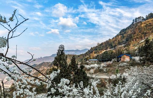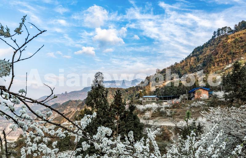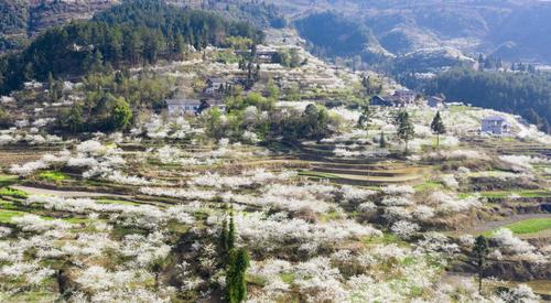 图片说明:2022年3月15日,重庆市南川区金山镇院星村漫山绽放的李花犹如皑皑白雪美如画卷。