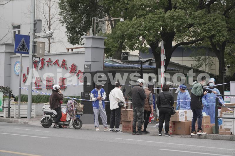 图片说明:2022年3月10日,相关人员在上海市第六医院徐汇院区门前交接物资。根据疫情防控要求,上海市第六人民医院3月6日起暂停徐汇院区门诊、急诊、发热门诊及核酸检测医疗服务。