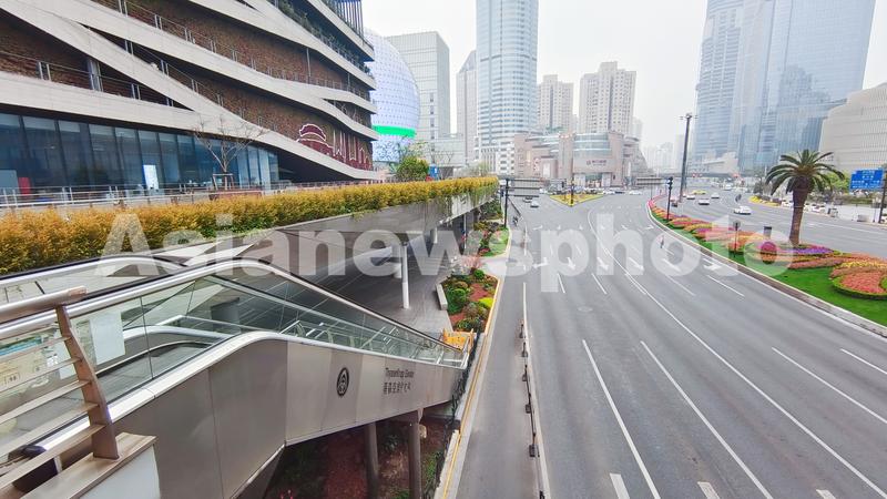 图片说明:2022年3月19日,上海,疫情防控下市中心徐家汇商圈的马路车辆、街头行人稀少,景观天桥自动电梯停用。