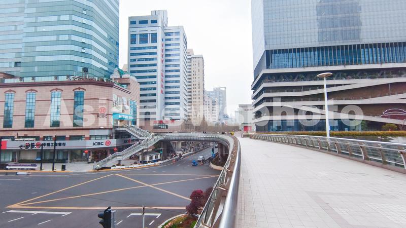 图片说明:2022年3月19日,上海,疫情防控下市中心徐家汇商圈的景观天桥行人稀少。