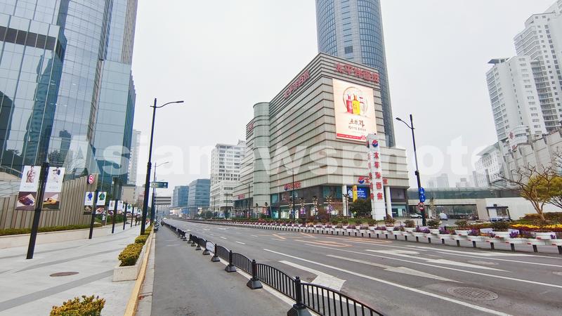 图片说明:2022年3月19日,上海,疫情防控下的市中心徐家汇商圈马路车辆、街头行人稀少。
