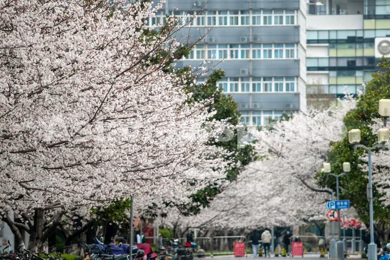 2022年3月22日,上海,同济大学爱校路上的樱花目前已进入盛花期。