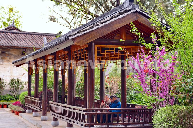 图片说明:2022年3月21日,村民在江西省赣州市南康区唐江镇卢屋村古建筑群的凉亭休憩。