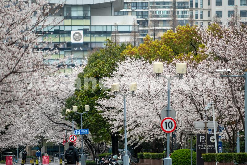 上海同济大学樱花大道进入盛花期