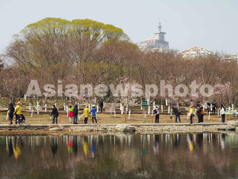 图片说明:2022年3月23日,北京玉渊潭公园内,游客在观赏樱花。