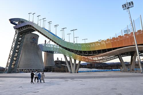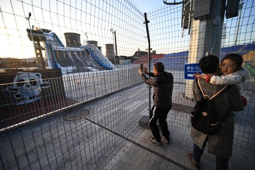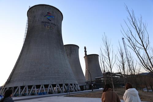 2022年3月21日,北京,游客在首钢滑雪大跳台附近参观游览。近日,首钢滑雪大跳台区域也迎来“解封”,市民游客可近距离参观大跳台。