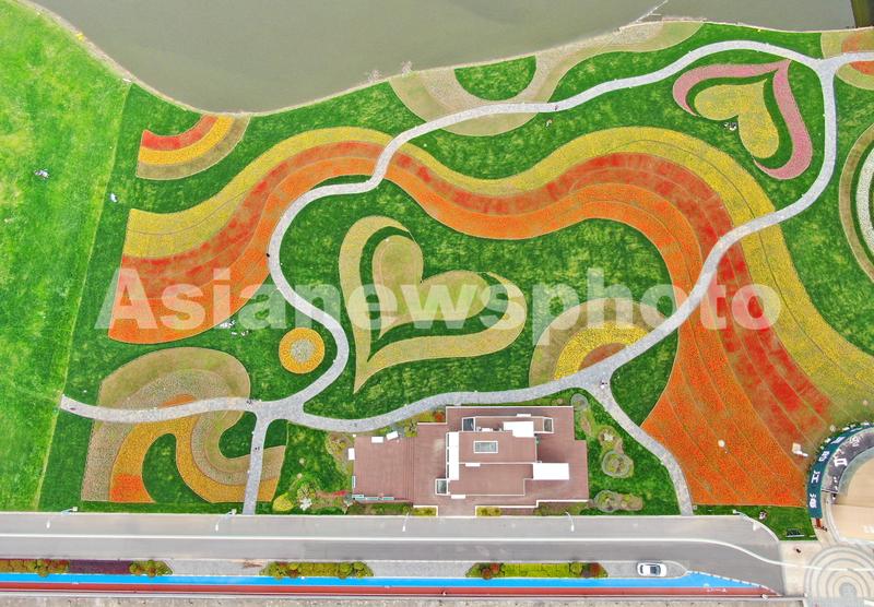 2022年3月27日,江苏启东圆陀角海边的海上明月郁金香花海花开正艳。色彩缤纷、品种各异的百万株郁金香让春日的长江入海口色彩丰富起来,吸引了游客赏花踏青。