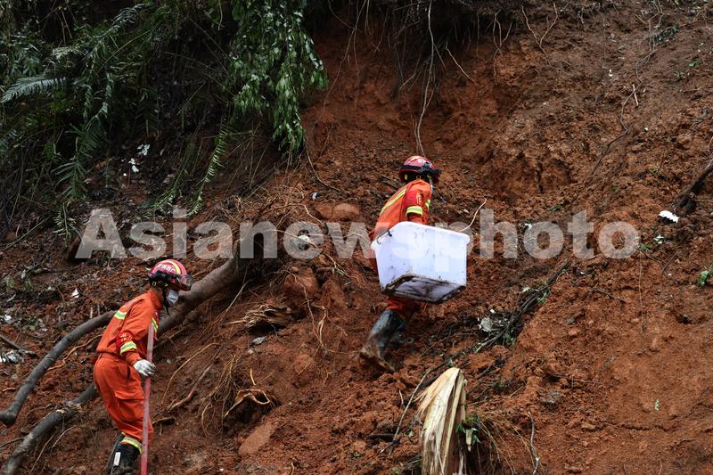 2022年3月24日,广西藤县,在东航MU5735客机坠毁事故核心现场搜寻工作持续展开。
