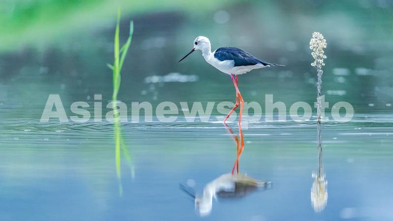 图片说明:2020年10月18日,在重庆市南川区金佛山国家自然保护区拍摄的黑翅长脚鹬。