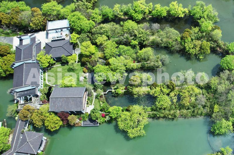 2022年3月30日,从空中俯瞰杭州西溪湿地。