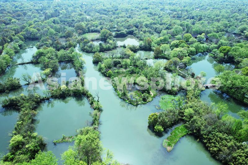 2022年3月30日,从空中俯瞰杭州西溪湿地。