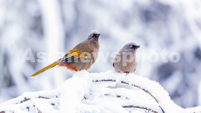 图片说明:2021年1月12日,在重庆市南川区金佛山国家自然保护区拍摄橙翅噪鹛。