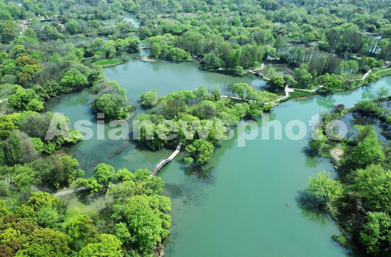 2022年3月30日,从空中俯瞰杭州西溪湿地。