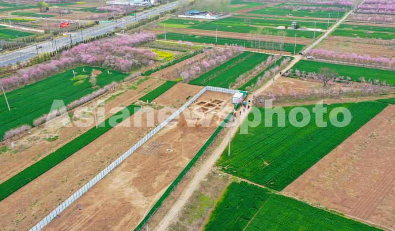 图片说明:2022年3月31日,航拍位于山东省滕州市东沙河街道陈岗村东部漷河两岸的滕州岗上遗址。