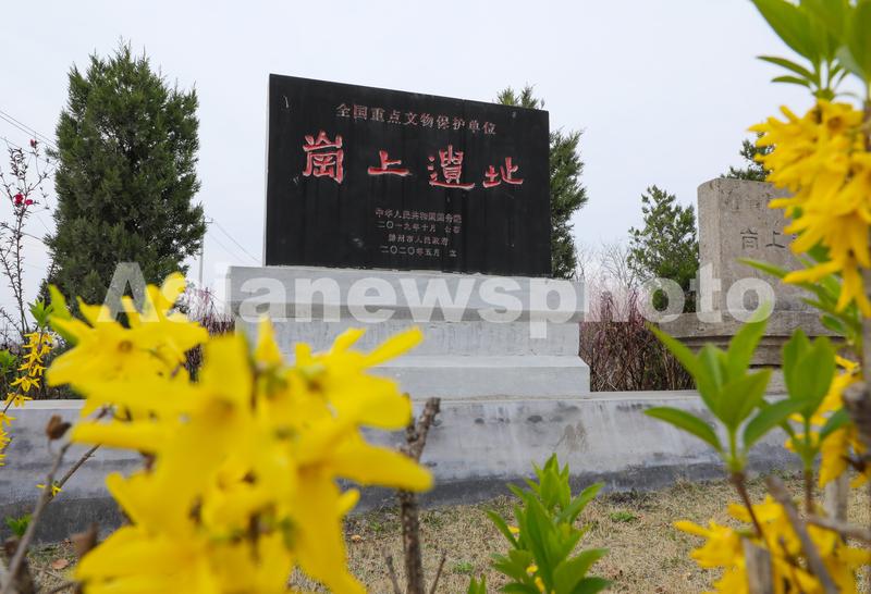 图片说明:2022年3月31日,全国重点文物保护单位--山东滕州岗上遗址保护碑。