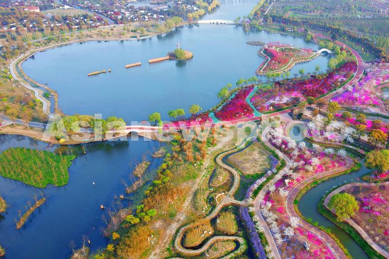 2022年4月3日,无人机在江苏省南通市通州区五接镇开沙岛上洲际梦幻岛拍摄的美丽春色。