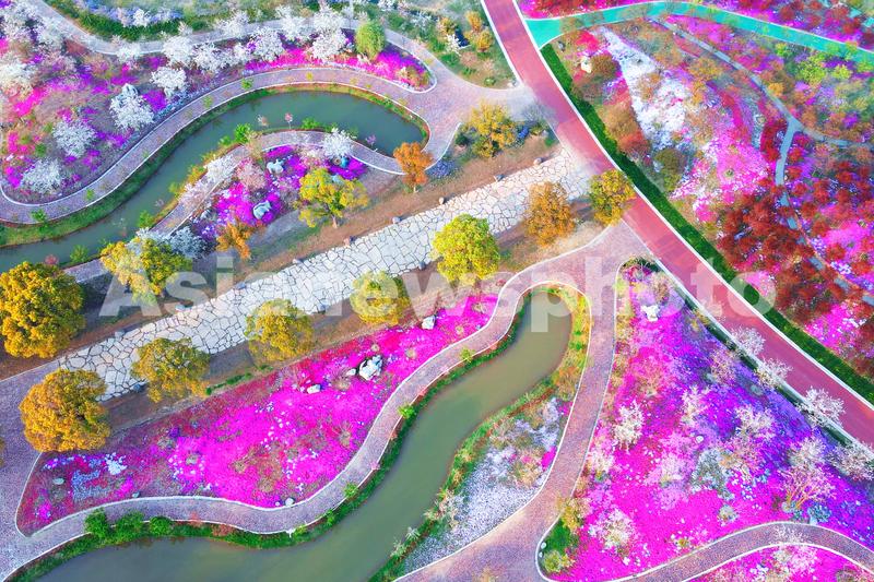 2022年4月3日,无人机在江苏省南通市通州区五接镇开沙岛上洲际梦幻岛拍摄的美丽春色。