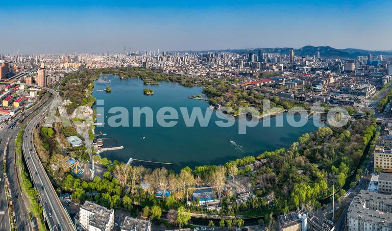 2022年4月1日,山东济南大明湖景区风和日丽,碧波荡漾,春暖花开,风光秀美。