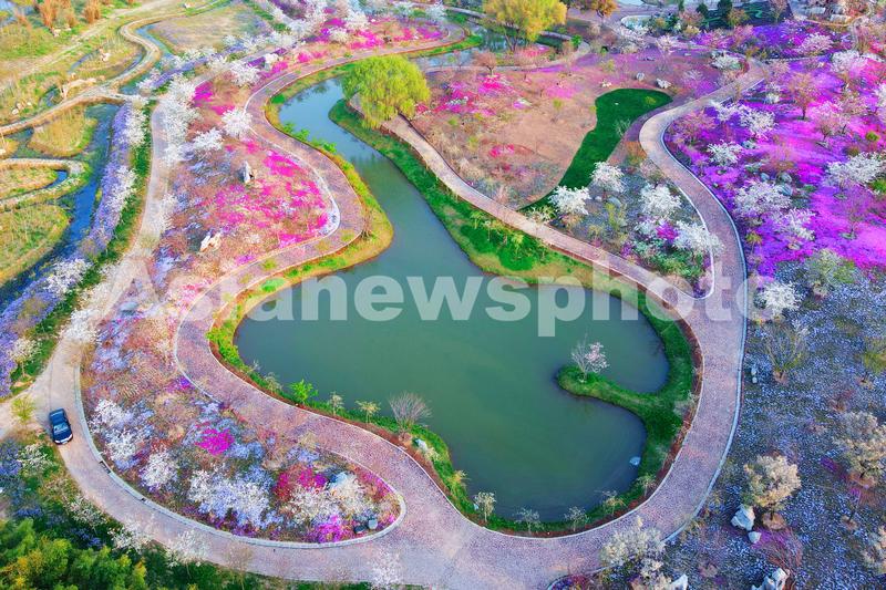 2022年4月3日,无人机在江苏省南通市通州区五接镇开沙岛上洲际梦幻岛拍摄的美丽春色。